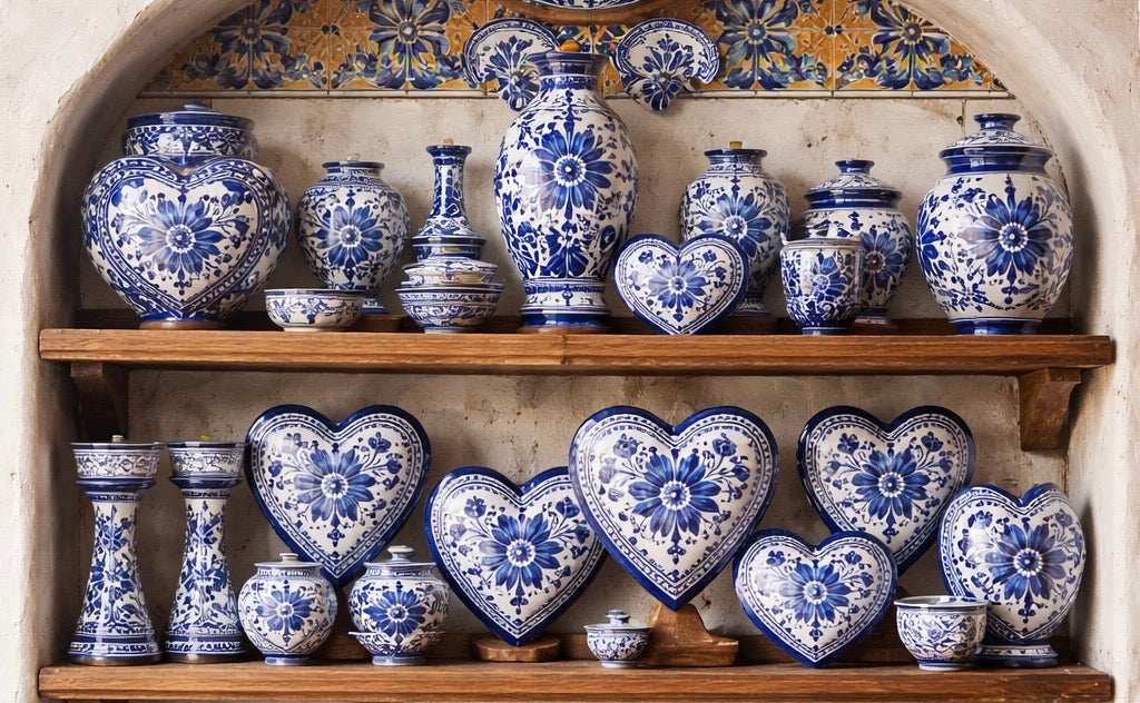 Colección inspirada en el arte mexicano Talavera Poblana y los corazones alusivos a la temporada. Dos colores clásicos que de inmediato me hacía pensar en esa cerámica particular de la cual desconocía su nombre. Una de las primeras piezas que encontré fue la que inspiró esta combinación. Mezcla de cultura y mainstream.